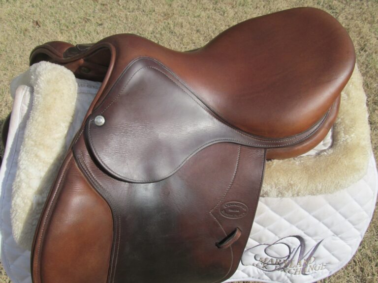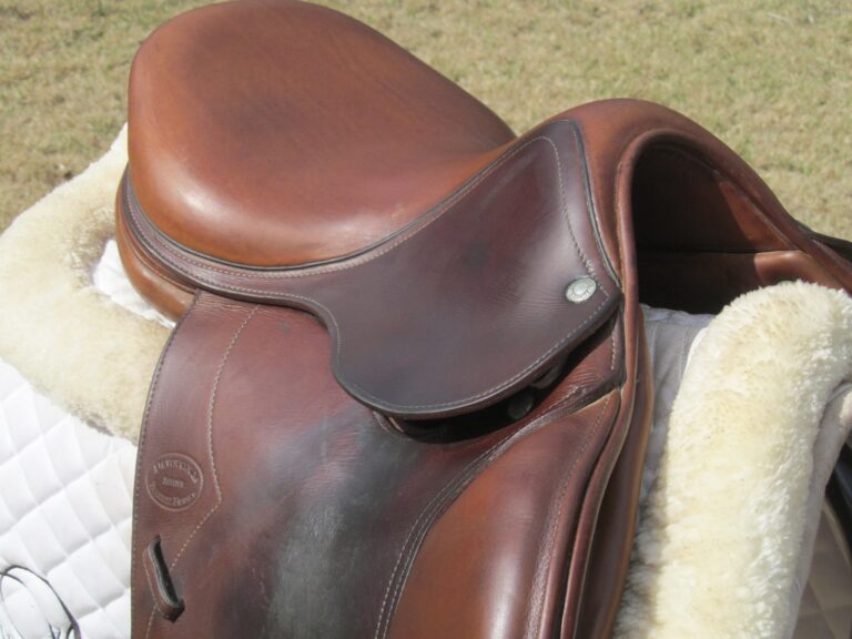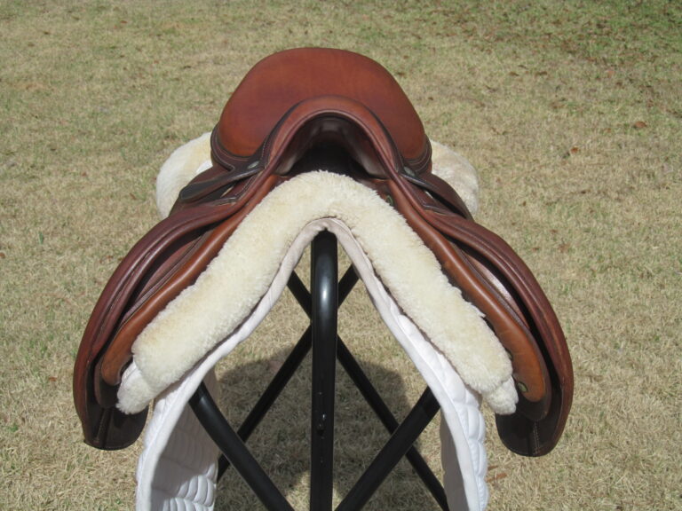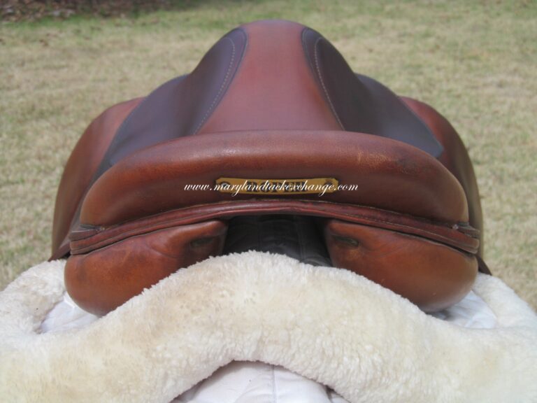 2010 MODEL. Hard to find model used. There are no tears and no loose stitching. There is a name plate that you can cover with your own. The leather is grippy, soft and upgraded calfskin which is a $800 upgrade. The outer knee pads are thick so your knees sink right in. Front + back blocks under the flaps. This is a hard to find model used and this cute little pony saddle will not break the bank for your growing rider.