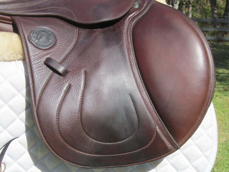 2021 Model. Upgraded buffalo leather. This saddle has butter soft leather and you will not slip and slide around. The outer pads are sooooo soft! There are no tears and no loose stitching. There was never even a name plate put on. There is a seat sweat spot on the seat. Great change to grab a French brand saddle that is a newer model and will not break the bank!