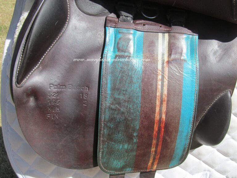 2018 model! FIN panels. Dark chocolate brown in color with upgraded calfskin leather. Leather is butter soft and very comfortable. No tears and no loose stitching. There is a name plate that you can cover up with your own. Front + back blocks under the flaps. The Palm Beach model has the slightly flatter seat. It is hard to find the standard #2 flaps and great for a rider NOT looking for a forward flap.