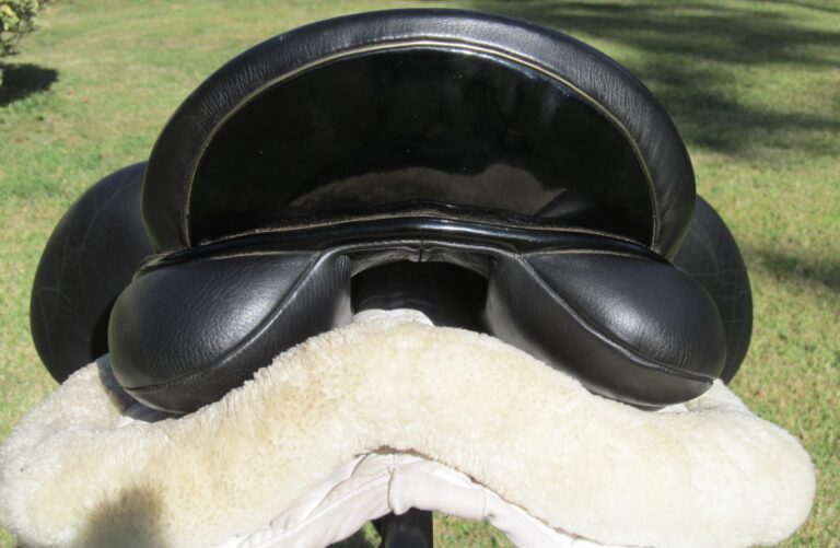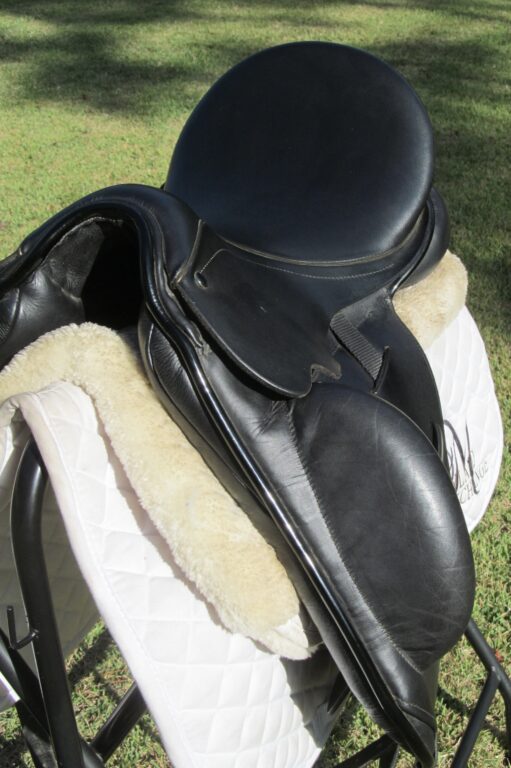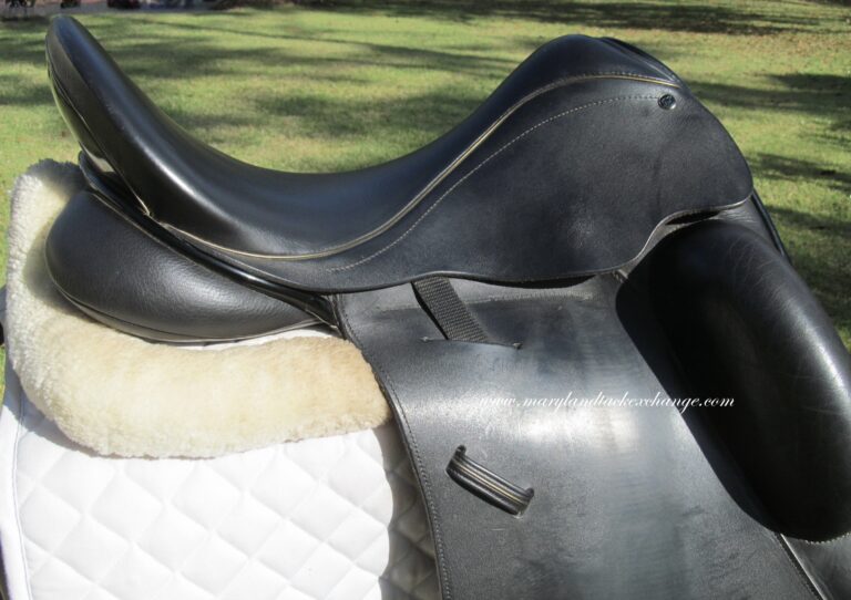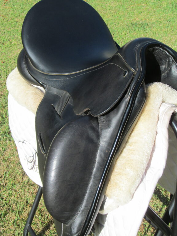 Seat is an 17.5″ flaps measure 16.5″ bar to bottom and the front gullet measures 3 3/4″-(med/narr tree) good for high withered horses.