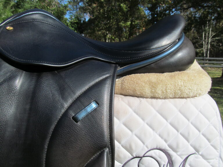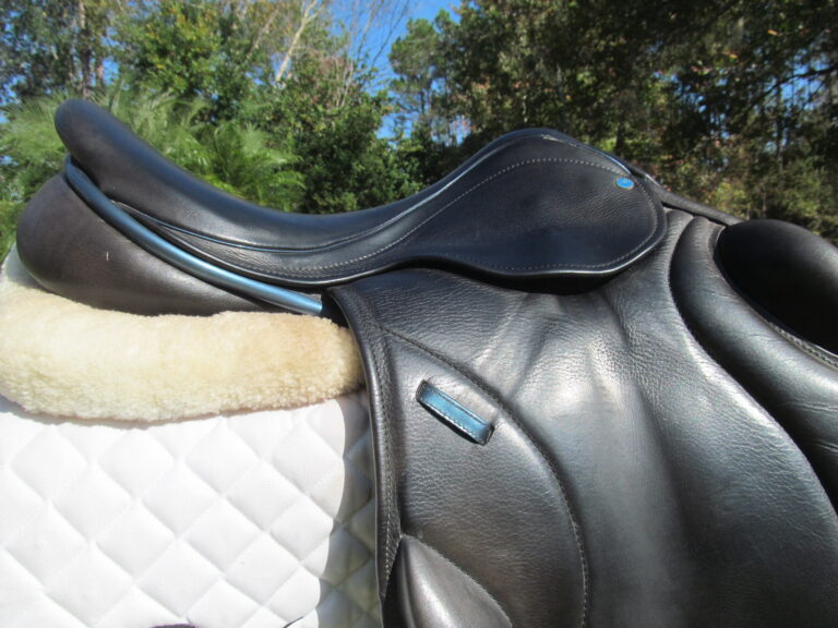 2020 MODEL.Black in color with upgraded custom blue piping on the back of seat and billet keepers. Butter soft bull leather. Exposed outer blocks help keep you securely in place. There are no tears and no loose stitching. The front panels show a little fading. Wool flocked so that you can adjust the flocking as needed. The flocking is nice and full and the back panels will help the saddle lay flat on your horse’s back. Hard to find model with a medium tree.