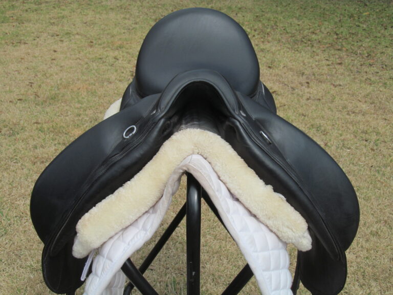 Seat is stamped 17.5″ flaps measure 15 1/2″ bar to bottom (#3AA forward flaps) the front gullet measures- 4 1/2″- medium tree.