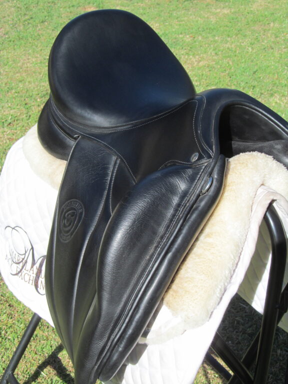 2022 Model. Full buffalo upgrade. This saddle is monoflap in design so it is a true close contact dressage saddle. Deep seat and large exposed outer 1/2 blocks really help keep you in place correctly. This saddle was not used much and you can see from the pictures it is in excellent condition. There are no tears, no loose stitching, and no fading. There was never even a name plate put on. Small leather tag on bottom shows panel info. Save about $3500 off the cost of a new one.