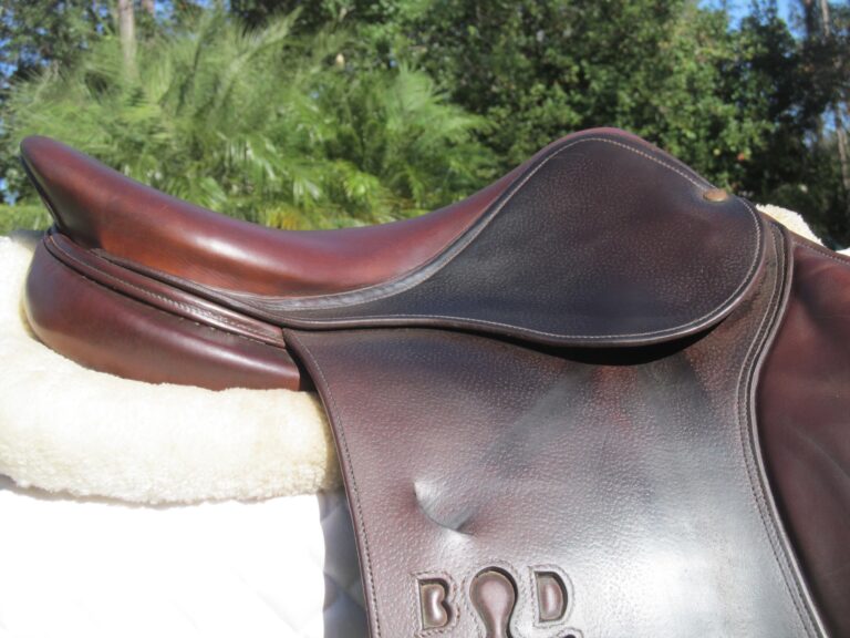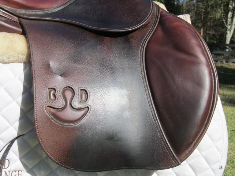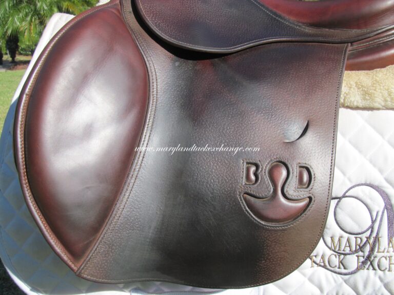 2023 model! New style logo on both sides in brown. Saddle is in very nice condition! There are no tears and no loose stitching. It had a name plate removed you can cover up with your own. The saddle has both front and back blocks. The leather on the saddle is buttery soft and well conditioned. The outer pads are super soft, thick and squishy and your knees will sink right into them.