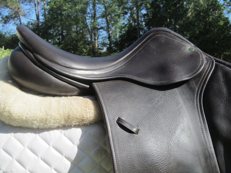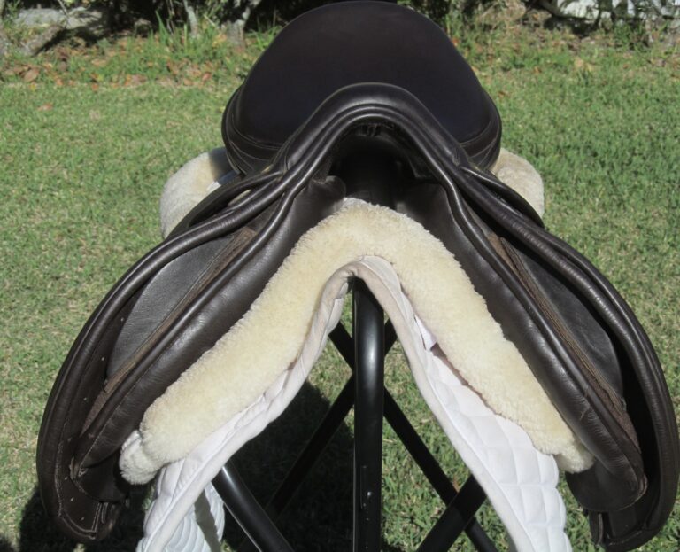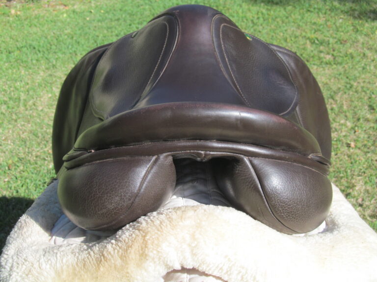 Seat measures 17″ flaps measure 13.5″ bar to bottom and 13.5″ across, the front gullet measures 4 “- narrow tree (the Innovation tree runs a little bigger so this will fit more like a medium/narrow).