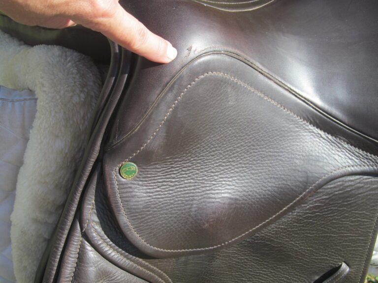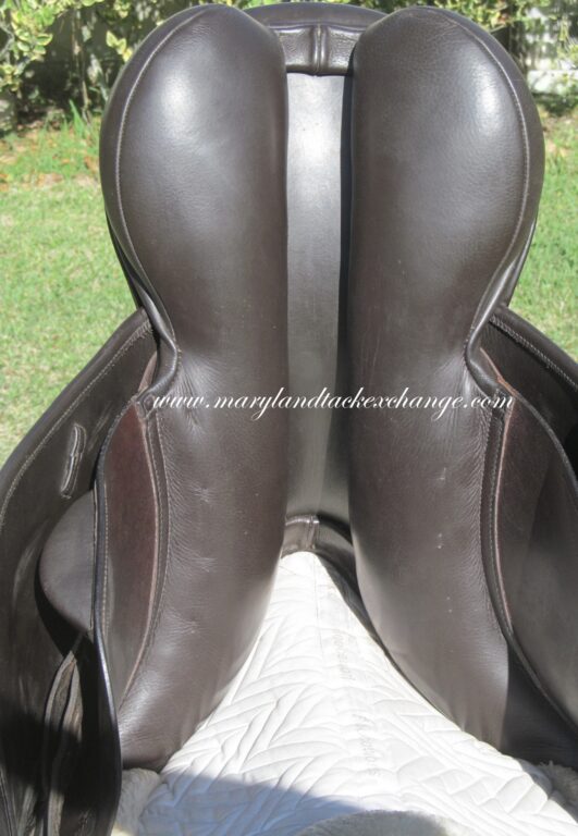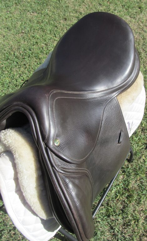 2015 model. Saddle is in lovely condition. Outer pads are nice and soft so that your knees sink into them. There are no tears, loose stitching and no cracking. There is a nick in the leather on the upper left side pommel (see picture). This has the upgraded bull leather that is soft and not slippery. Has both front and back blocks. Wool flocked so the flocking can be changed fit your horse.