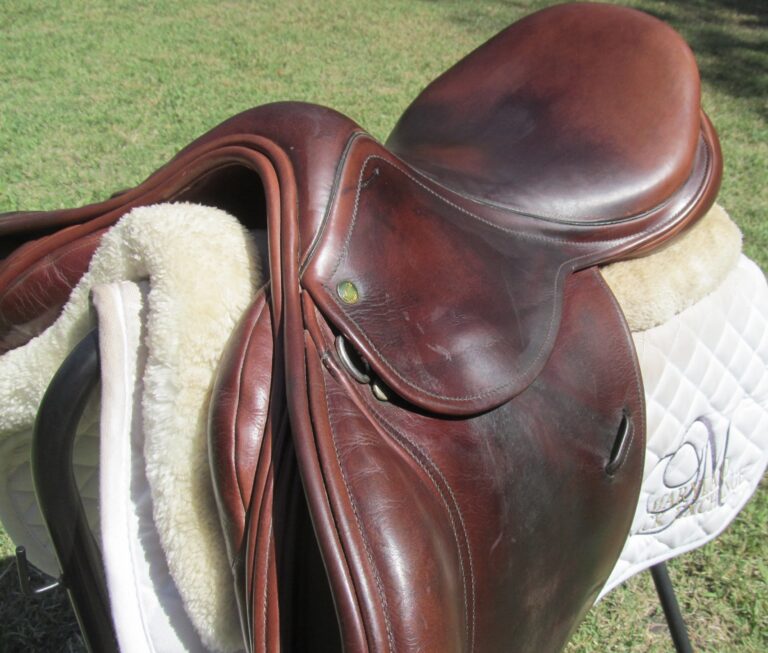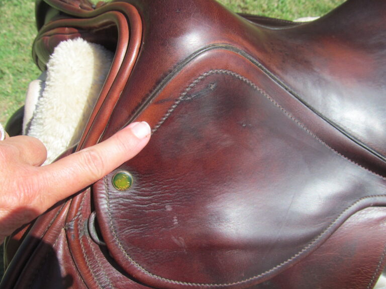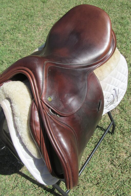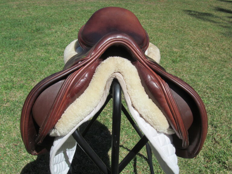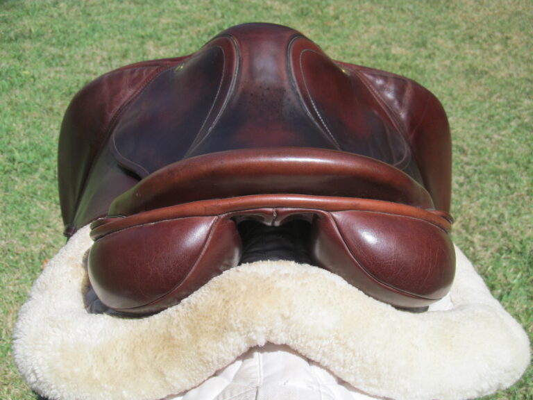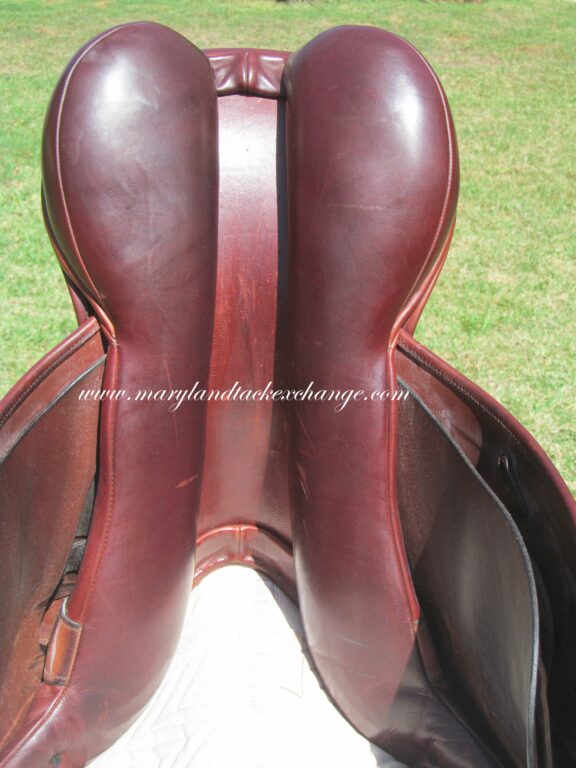 2012 model. Upgraded bull leather leather makes for a very grippy ride so you do not slip and slide around. The leather is buttery soft and you can literally roll the flaps. The outer pads are like soft little pillows your knees sink right into. There are no tears and no loose stitching. There is a scratch on the small left flap (see picture). Large front blocks under the flaps. This has the front shoulder gussetts that help fill in that area that hollows behind the horses wither to help keep the saddle in place. Wool flocked so the flocking can be adjusted to best suit your horse. Sensation model with a medium tree are hard to find used and this one will not break the bank.