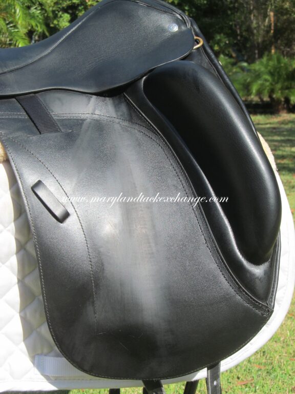 2016 model. Monoflap in design. Custom Saddlery trees are adjustable by a certified Custom dealer so you can change this tree both more narrow or wider if you need to. These are also wool flocked so the flocking can be adjusted to best suit your horse. There are no tears, no fading and no cracking. The outer blocks are on a slight angle so good for someone with a longer thigh that needs a little angle. Priced to sell!