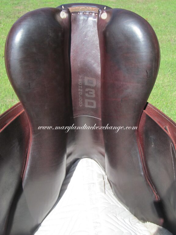Seat measures 17″ flaps measure 12.5″ bar to bottom and 12″ across (#0 X-short flaps) the front gullet measures 4 3/4″- medium tree.