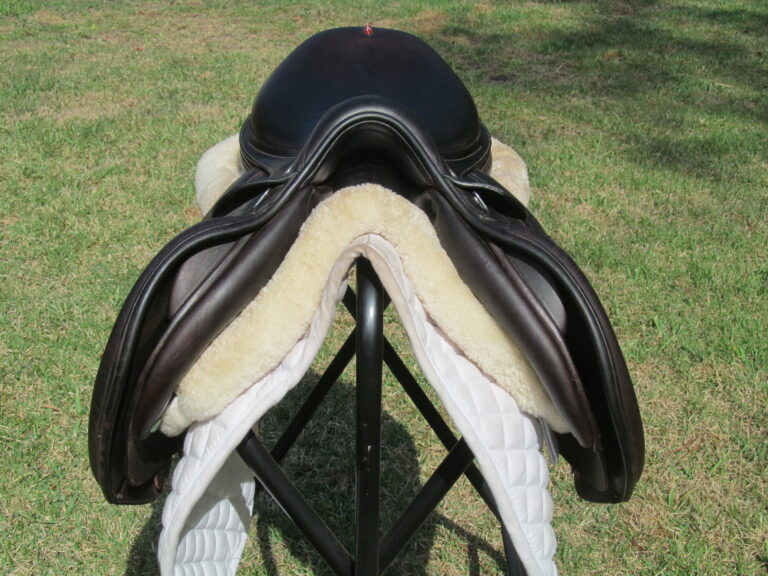 2021 Model. Dark Brown in color. Calfskin leather that is grippy and soft. There are no tears and no loose stitching. The back piping on the cantle shows a couple rough marks and dings (see picture). The Equipe special one model is one of Equipe’s higher end lines with the Carbon tree. Front blocks and back blocks. This saddle being sold at a fantastic price since these sell about $6500+ new.