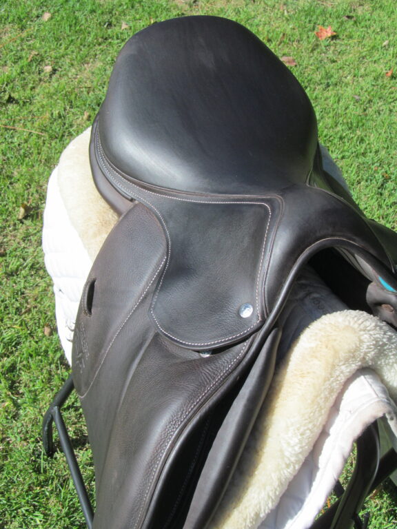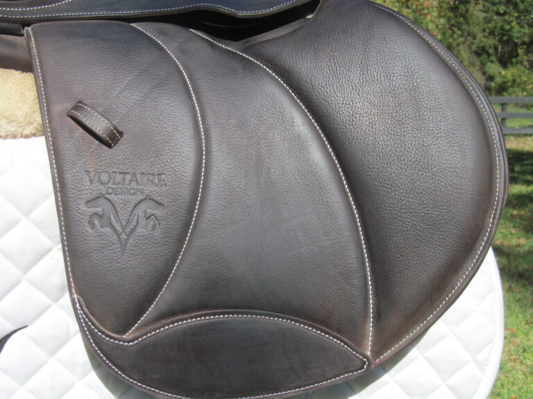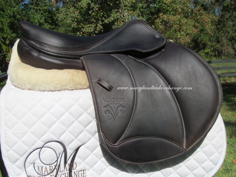 2025 model! Pro Panels. Dark chocolate brown in color with upgraded buffalo leather ($1000 UPGRADE). There is a small leather tag on the bottom showing the panel info. Leather is butter soft and very well cared for. Saddle is in perfect condition with no tears and no loose stitching. There is a name plate that you can cover up with your own. Front + back blocks under the flaps. Bottom panels are the 2nd skin that conform to any shape horse. If you have been wanting a new Voltaire but don’t want to spend the close to $9000 price tag with the upgraded leather you can get this one thousands off!