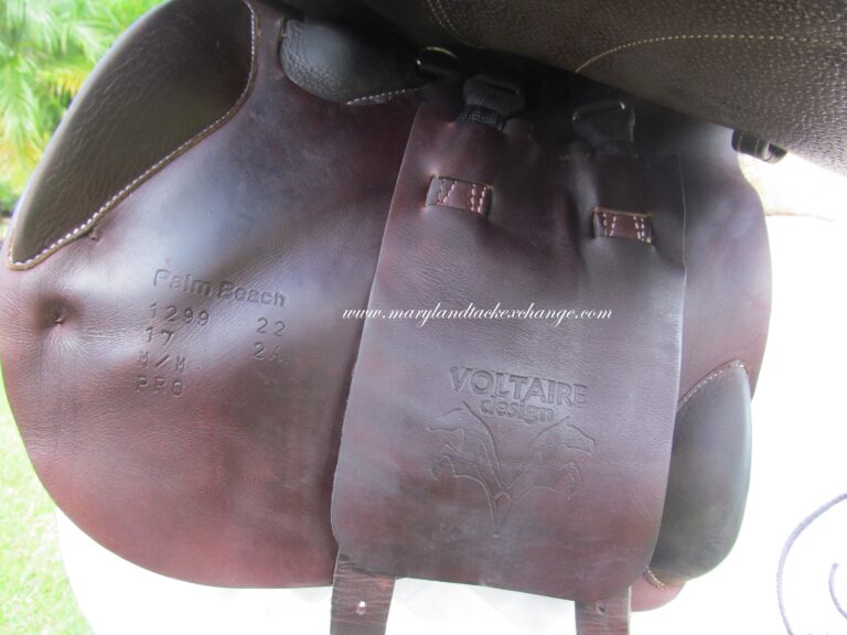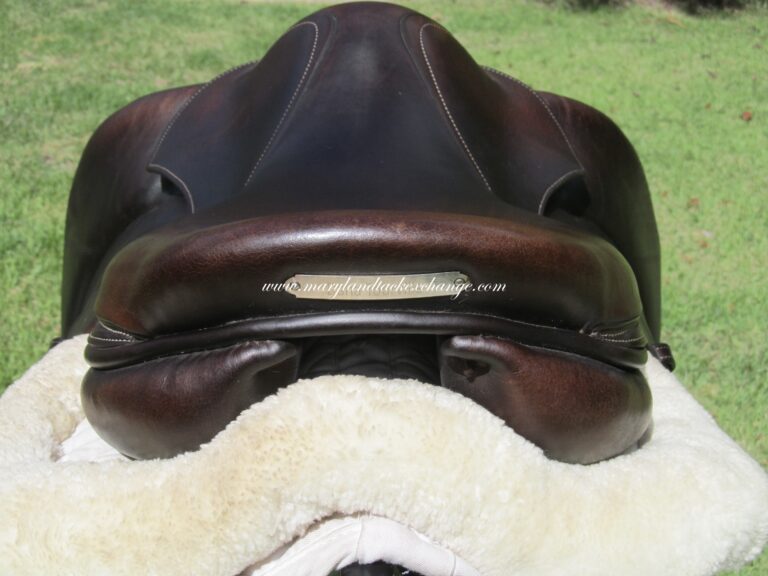 2022 model! Pro Panels, Dark chocolate brown in color with upgraded calfskin leather. Saddle is in nice condition with no tears and no loose stitching. There is a name plate that you can cover up with your own. The seat shows a few striation marks. We are not sure why but it is nothing you can feel and it may buff out over time with saddle being newer. Saddle being discounted $500 due to this. Front + back blocks under the flaps. This has the 2nd skin flaps on the bottom that conform to any shape horse. Great chance to get a 2022 model at over 65% off retail!