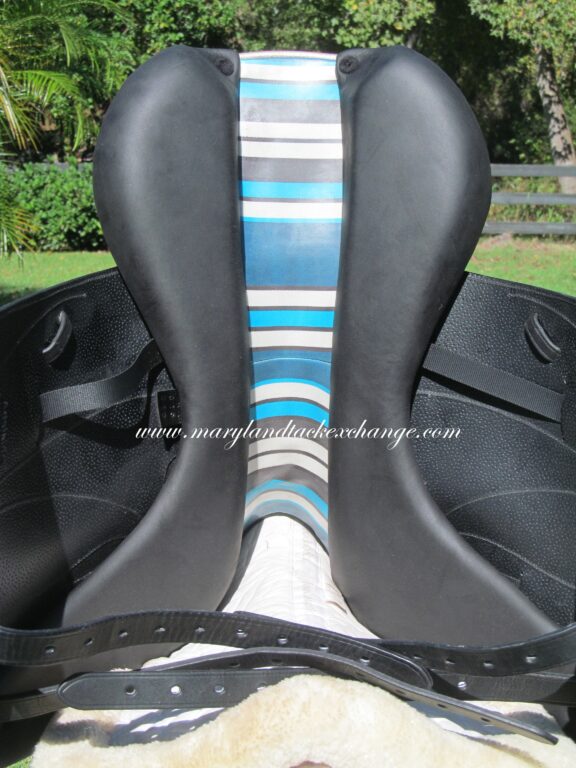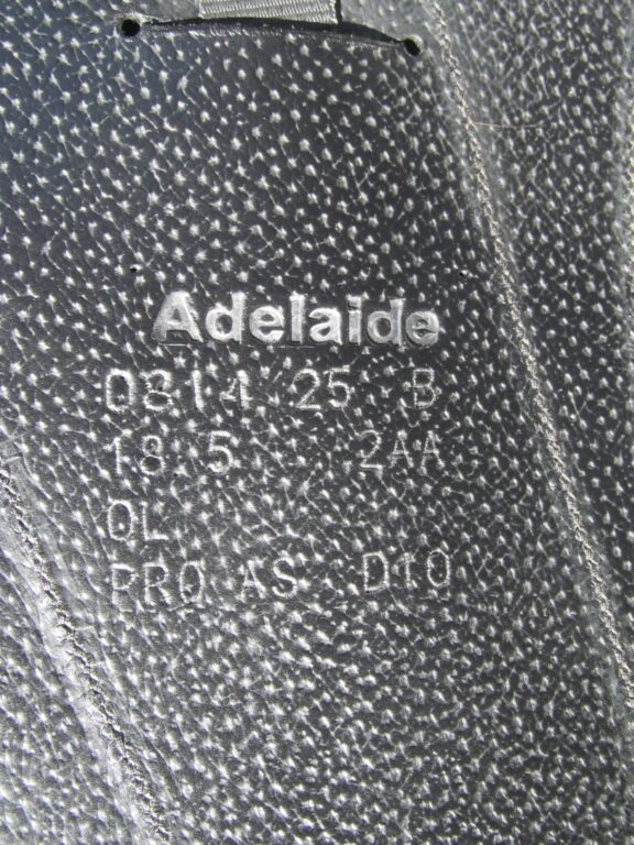 Seat stamped 18.5″, flaps measure 15.5″ bar to bottom (#2AA forward flaps)and the front gullet measures 4 3/4″ medium tree.