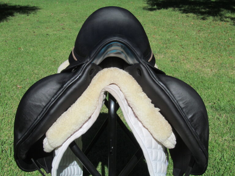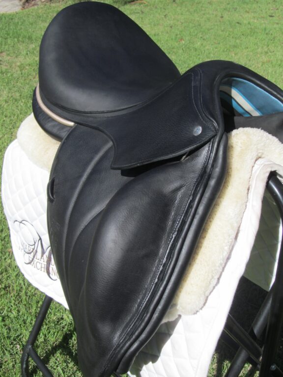 2025 Model! Saddle was purchased new and only used a few times. Was not a returnable item so this is being sold at a few thousand dollar loss. It has the upgraded custom Rose Gold color piping along the back of the seat. It is better than demo condition with no faults. There are no tears, no loose stitching and no seat seam wear, no fading. The only thing is it has a name plate you can cover with your own. This shows the panel info on the small leather tag and has the PRO panels. Great find for a rider looking for this size with a savings on a basically new saddle at over $3000!