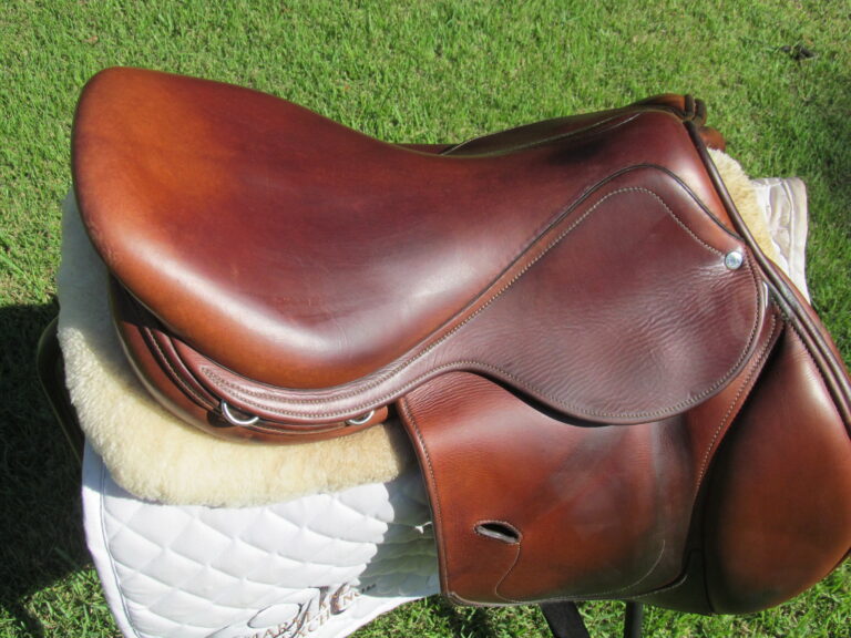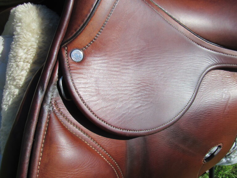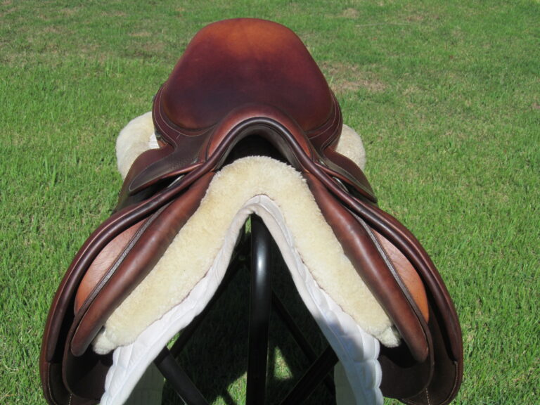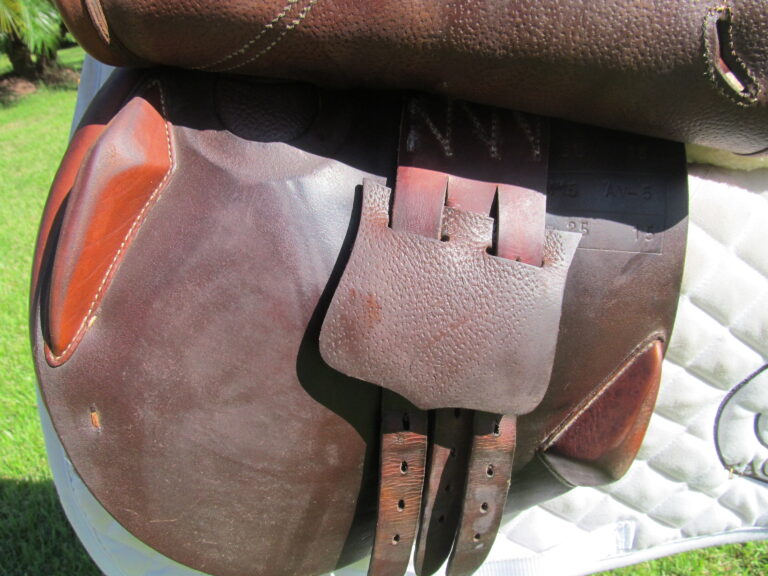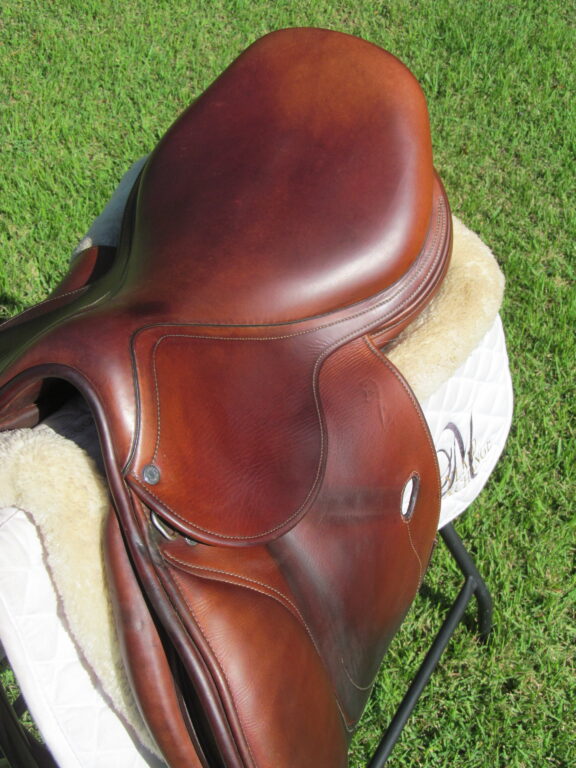 2015 Model. Upgraded calfskin leather that is VERY grippy and soft. Outer pads are nice and thick and squishy for your knees. There are no tears, no seat seam wear and no loose stitching. Front blocks and back blocks under the flaps. Antares saddles with the upgraded calf leather are currently selling over $7000, this is a great change to grab one in lovely condition at a fraction of that price.