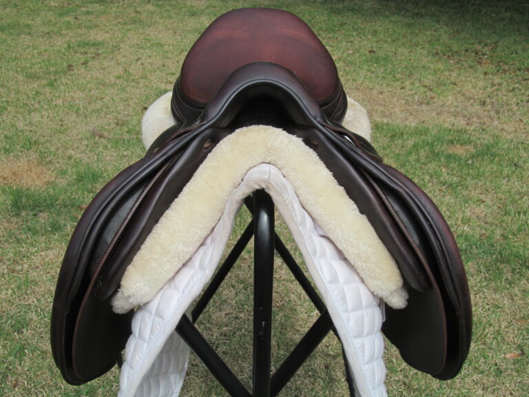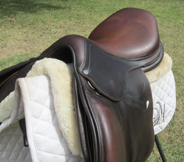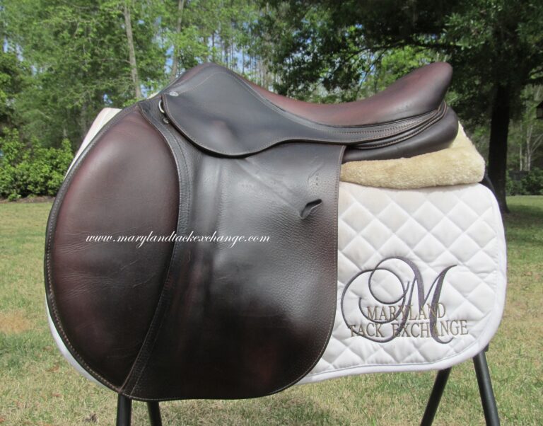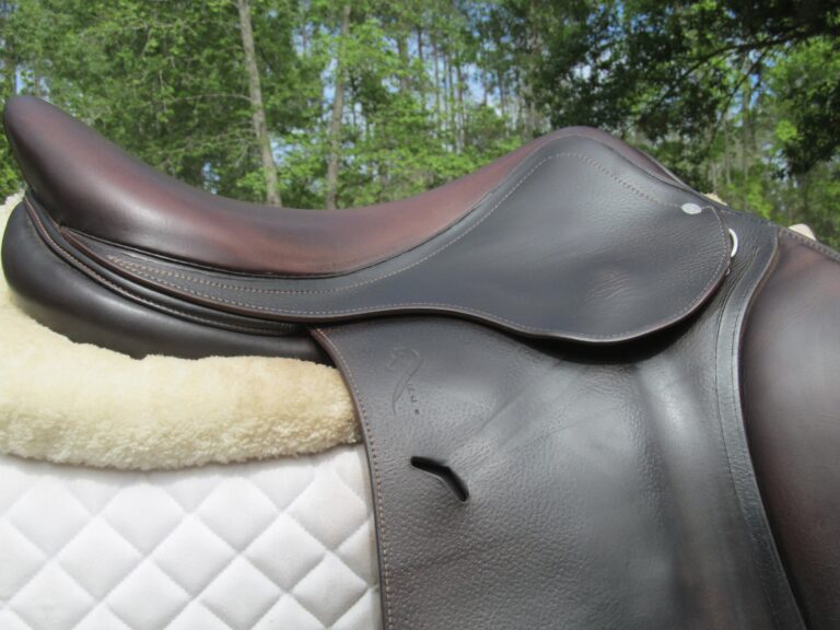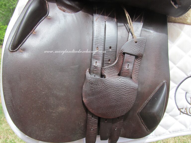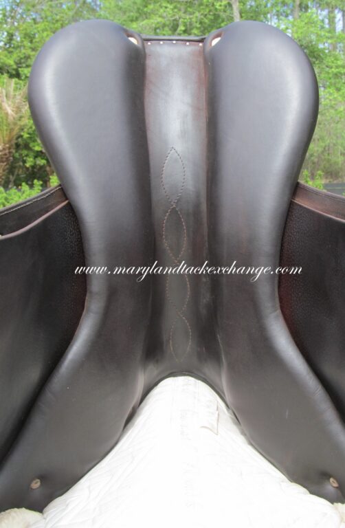 2023 Model. Dark chocolate brown in color. Saddle has the grain leather with soft calfskin on outer pads and seat. It does show some rubs on the outer pads and flaps from use. There is a name plate you can cover up with your own. Outer pads are nice and soft and your knees will sink into them. Front blocks and back blocks under the flaps. Ideal for a rider long knee to ankle. The 4NB flaps is very hard to find used. Great chance to get a 2023 Antares at almost $5000 off the cost of a new one.