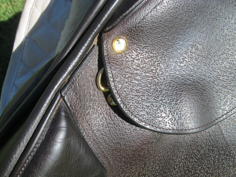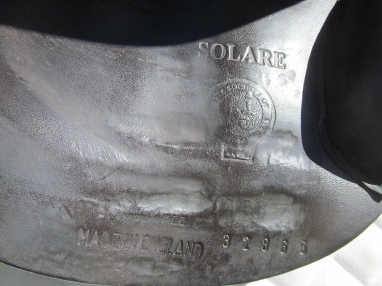 Seat is stamped and measures 18.5″, flaps measure 14″ bar to bottom and 14″ across the front gullet measures 5 1/4″medium/wide tree.